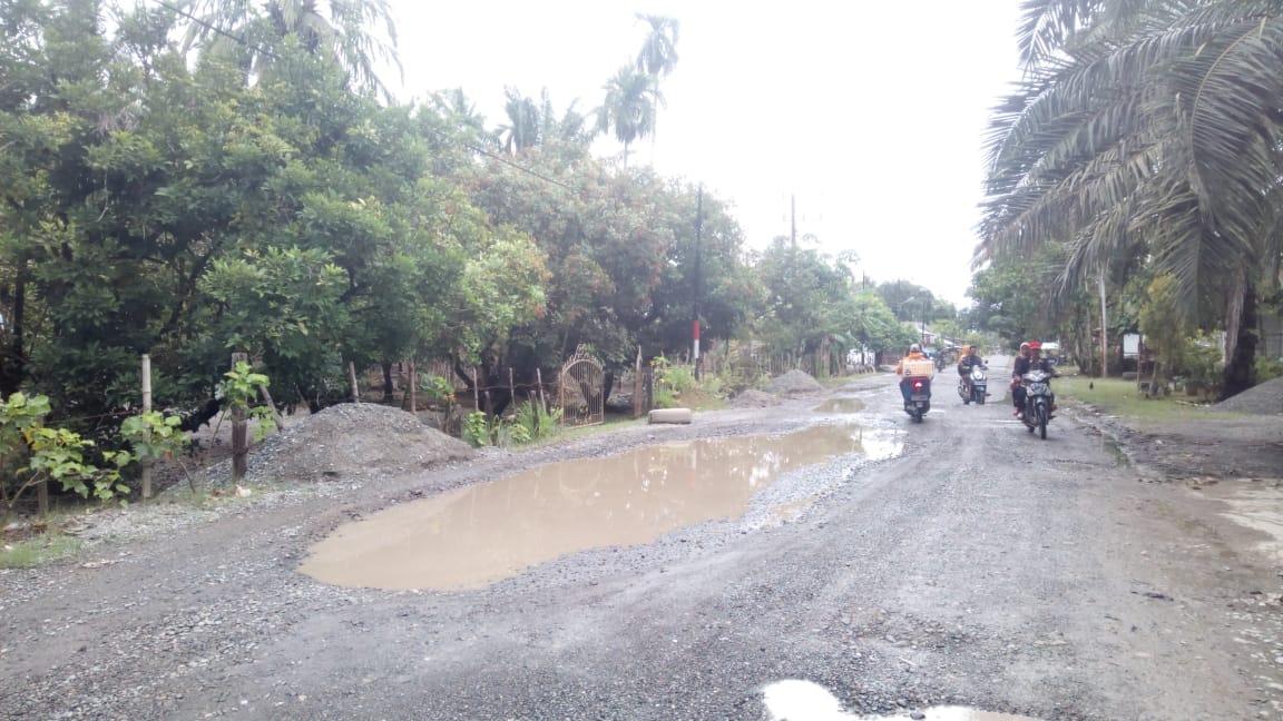 Aceh Barat, Nusantarapos.co id – Jalan penghubung pasi Kumbang sampai ke sawang teubai Kecamatan Kaway VI, Kabupaten Aceh Barat mengalami kerusakan. Warga yang melintas harus ekstra berhati-hati agar tidak terpelosok ke lubang di tengah jalan.