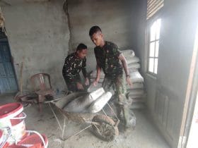 “Agar cepat membuat adukan betonnya, maka kami langsung membawa material semen ini ke lokasi sasaran dan nanti akan di buat adonan semen menggunakan alat molen, jadi tidak perlu harus menunggu lama dalam pembuatan adonan semen nya karena sudah menggunakan mesin molen yang lebih efektif dalam pembuatan nya,” Pungkas Praka Bayu. (Pendim 1202/Skw)