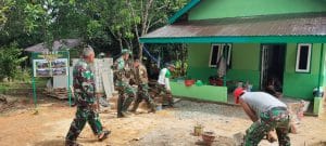 Kali ini Dansatgas meninjau Box Culvert, pengerasan jalan sepanjang 1.000 meter dan pembuatan tugu prasasti, selanjutnya mengecek sasaran tambahan pembangunan rumah milik Ibu Arbaiyah (82) tahun.