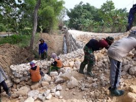 Kapten Inf Siari Pasiter Kodim Gresik, Senin (12/07/2021) menyampaikan, sangat senang melihat warga yang semangat pemasangan kawat gronjongan di sungai teretek kali bambu.