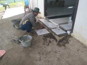 Bengkayang – Melanjuti perehaban Gereja St Kristoforus, hari ini anggota Satgas TMMD ke-111 Kodim 1202/Skw, sedang memasuki tahap pemasangan keramik. Gereja St Kristoforus merupakan salah satu rumah ibadah di Desa Sentangau Jaya, Kecamatan Seluas Kabupaten Bengkayang, yang menjadi sasaran pembangunan fisik TMMD ke-111.
