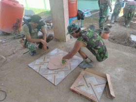 Saya yakin dan percaya kepada anggota Satgas TMMD kalian adalah sosok prajurit yang mempunyai ahli bangunan yang sudah berpengalaman penugasan khususnya TMMD yang kerap dilaksanakan setiap tahun. sehingga pengerjaan pemotongan dan pemasangan keramik nantinya disetiap sudut akan kelihatan tegak lurus. Ujarnya Pasiter.