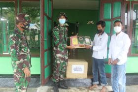 Tanah Laut – Komandan Korem 101/Ant Brigjen TNI Firmansyah memberikan bingkisan Alqur’an, Iqro, Juz Amma dan peralatan mengaji untuk Taman Pendidikan Alqur’an TPA Al-Amin yang diserahkan langsung oleh Komandan Satuan Tugas (Dansatgas) TMMD ke-111 Letkol Inf Adi Yoga Susetyo, SH., M.A. kepada panitian TPA bertempat di Dusun Riam Pinang Desa Tanjung Kec. Bajuin, Selasa (13/07/2021).