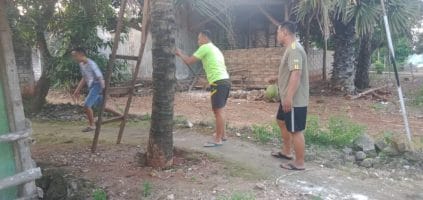 Gresik,- Sekedar diketahui, kondisi geografis Desa Siwalan yang ada di perbukitan, sehingga cukup menjadi lahan subur pohon kelapa di desa itu. Oleh warga setempat, Tentara yang tergabung dalam Satgas TMMD dipersilahkan untuk mengambil dan menikmati air kelapa kapanpun menginginkan.