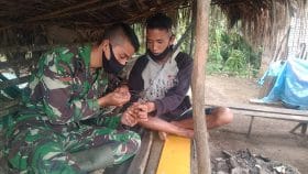 “Satgas TMMD ke 111 Kodim 0212/TS, membantu buat jaring ikan, Bapak Khalaid Hutabarat, Desa Batu Rosak, Kec. Angkola Sangkulur, Kab.Tapsel, “ jawab Prada Faisal Caniago, Senin (12/7/2021).