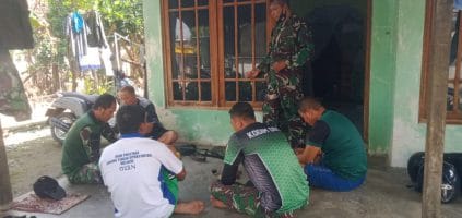 Gresik – Rumah seorang warga di Desa Siwalan Kecamatan Panceng Kabupaten Gresik, menjadi untuk menjalin silaturahmi Satgas TNI Manunggal Membangun Desa (TMMD) Kodim 0817/Gresik dengan warga. Seperti yang dilakukan Personil Satgas TMMD ke-111 Kodim Gresik. Rabu (14/07/2021)