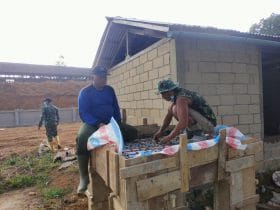 “Anggota Satgas TMMD dan Warga bergotong royong membuat Box Tower Penguin agar cepat selesai dan bisa dimanfaatkan oleh masyarakat Sentangau Jaya ,” jelasnya.