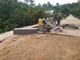 “Langka ini untuk mengejar target waktu penyelesaian program sasaran utama TMMD dan dibantu masyarakat setempat, untuk bersama-sama mengerjakan penyelesaian plasteran pinggiran Jembatan Ini,” ujar Serda safriadi anggota satgas TMMD