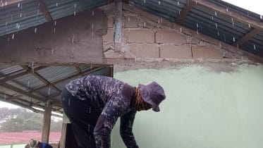 Semangat itu ditunjukkan Satgas TMMD dan warga saat melakukan pemlesteran dilokasi pembangunan Puskesmas Pembantu.