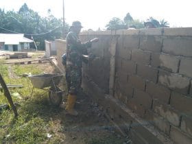 Bengkayang – program sasaran utama TNI Manunggal Membangun Desa (TMMD) ke-111 Kodim 1202/Skw yang terpusat di Desa Sentangau Jaya, Kecamatan Seluas, dilakukan oleh Satgas TMMD dibantu masyarakat Desa Sentangau, bersama-sama mengerjakan pemelesteran dinding pagar Gereja ST Kristoforus.