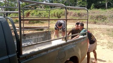 Bengkayang – Anggota Satgas TMMD ke-111 Kodim 1202/Skw bersama warga masyarakat saling membantu bahu-membahu menurunkan material yang baru datang bertempat di lokasi pengerjaan TMMD ke-111 di Dusun Trimulya Desa Sentangau Jaya Kecamatan Seluas Kabupaten Bengkayang.