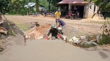 “Dengan alat cetok, sertu Jarwani Notabenya Spes tukang sangat lihai dan terampil memplester teras depan gereja sehingga terlihat rapi dilihat,” pungkasnya. (Pendim1202/Skw)