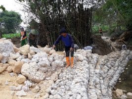 Satgas Dan Warga Kebut Pemasangan Batu Bronjong Sungai Tretek