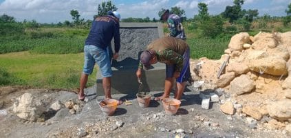 Satgas TMMD dengan semangat tinggi tanpa lelah walaupun matahari menyengat badan, namun semangat satgas TMMD tak pernah luntur. Mereka tetep semangat menyelesaikan pembangunan tugu Prasasti.