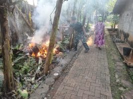 Gresik,- Pohon pisang yang sudah tidak produktif pun turut dibabat habis oleh prajurit TNI itu. “Kami berinisiatif membantu bersihkan kebun ini, karena kami merasa masyarakat di Desa, Siwalan sudah kami anggap sebagai keluarga. Dan mereka sangat menerima kehadiran kami, saat kami menginapnya di rumahnya. Bahkan, kami diperlakukan layaknya keluarga sendiri,” kata Serda Hendra.