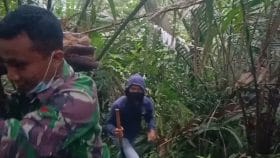 Satgas TMMD ke 111 kodim 0212/TS anggota Satgas membantu masyarakat mengambil kayu pohon pakis untuk di jadikan tempat pot bunga angrek di Desa Siuhom Kecamatan Angkola Barat Kabupaten Tapanuli Selatan.
