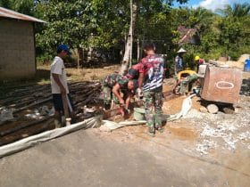 Seperti halnya yang dilakukan oleh warga setempat, dengan penuh antusias dan semangat yang tinggi ikut membantu anggota TMMD khusus untuk melepaskan papan mal sebagai pembatas pengecoran jalan rabat beton.