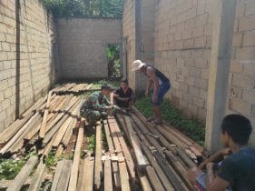 Salah satunya dengan membantu warga menggergaji kayu yang akan di jadikan atap rumah.