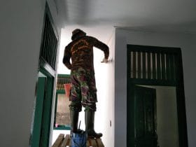 Bengkayang – Renovasi puskesmas pembantu yang di laksanakan anggota satgas TMMD ke 111 kodim 1202/skw yang dikerjakan oleh Satgas TNI sudah masuk tahap finishing yaitu pengecatan