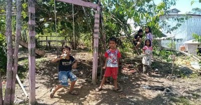 Anak-anak di Desa Sentangau Jaya di lokasi sasaran program TMMD ke-111 sasaran fisik seperti wahana bermainan bagi mereka karena mereka di buatkan tempat ayunan oleh anggota Satgas TMMD dengan Kehadiran anak-anak ini disambut hangat oleh personil Satgas TMMD.
