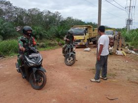 Kubu Raya – Keberadaan sejumlah alat dan material di lokasi pembangunan jalan terus di pantau oleh tim satgas TMMD ke-111 Kodim 1207/Pontianak. Minggu (13/06/2021)