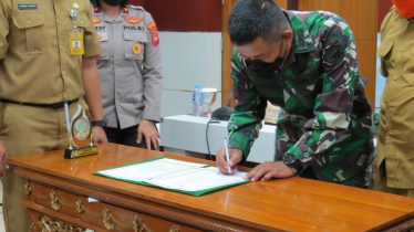 “Penandatanganan berita acara ini lazimnya dilakukan saat upacara pembukaan TMMD. Namun dengan situasi saat ini dimana kita dihadapkan dengan kejadian pandemi corona, maka acara ini kita lakukan secara terbatas untuk menghindari adanya pengumpulan massa dalam jumlah yang banyak” ungkap Dandim.