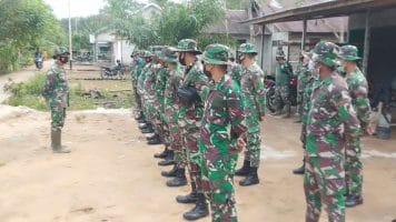Kubu Raya – Sudah menjadi kewajiban di instansi pemerintah manapun, sebelum melaksanakan tugas terlebih dahulu melaksanakan apel pagi dan wajib hukumnya dilaksanakan setiap hari kerja ataupun pada setiap kegiatan. Seperti halnya satgasTMMD ke-111 Kodim 1207/Pontianak TA. 2021 di Desa Kuala Mandor B, Kecamatan Kuala Mandor B, Kabupaten Kubu Raya, Kamis (17/06/2021).
