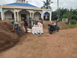 Danramil 1207-06/Sungai Ambawang Kodim 1207/Pontianak Kapten Kav. Edi Darmadi saat ditemui di lapangan mengatakan, “Material yang dibutuhkan dalam pekerjaan ini sudah siap dilokasi pengerjaan, ini dilakukan agar jangan sampai kehabisan bahan untuk dikerjakan” ujarnya.