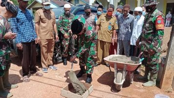 Kubu Raya – Dandim 1207/Pontianak Kolonel Inf. Jajang Kurniawan,S.I.P., M.M., laksanakan peletakan batu pertama pembangunan jalan di Dusun Maju Jaya, Desa Kuala Mandor B, Kecamatan Kuala mandor B, Kabupateb Kubu Raya.Senin (14/06/2021)