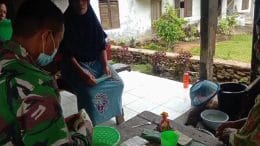 Hari kedua puluh sembilan, Satgas TMMD ke 111 kodim 0212/TS anggota Satgas membantu warga di warung memasak pisang goreng di Desa Siuhom Kecamatan Angkola Barat Kabupaten Tapanuli Selatan.