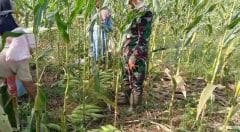 Satgas TMMD ke 111 Kodim 0212/TS anggota Satgas membantu warga di memanen jagung di Desa Siuhom Kecamatan Angkola Barat Kabupaten Tapanuli Selatan