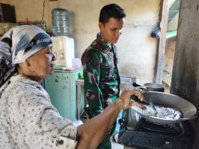 Sementara itu, Ibu Nuruk mengaku senang anggota Satgas TMMD yang tinggal di rumahnya turut membantu memasak di dapur.