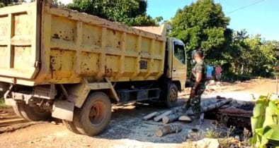 Menurut Sertu Suryandi “kami mendapat laporan dari masyarakat bahwa ada truk yang amblas tidak jauh dari lokasi TMMD. Seijin Dan SSK maka kami segera menuju lokasi amblas nya truk”.