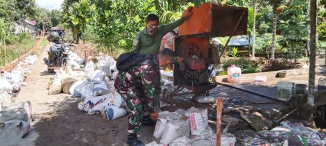 Kubu Raya – Anggota Satgas TMMD Reguler Kodim 1207/Pontianak. Terus mengawasi kedatangan material utama dalam pekerjaan Rabat Beton di Dusun Maju Jaya Parit Abak Rt/Rw. 03/03 Desa Kuala Mandor B, Kuala Mandor, Kubu Raya, Sabtu (19/06/2021).