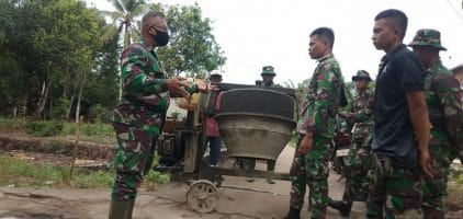 “Untuk kegiatan hari ini, anggota satgas TMMD dibantu bersama-sama masyarakat bergotong royong mulai melaksanakan pengecoran jalan, ada yang melansir material” ungkapnya.