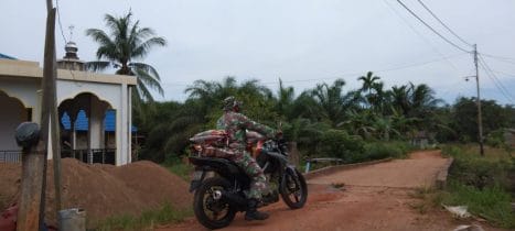 Terlihat anggota satgas yang tergabung dalam TMMD ke-111 Kodim 1207/Pontianak tengah menyiapkan material yang akan diolah untuk pengecoran jalan. Dengan keterbatasan sarana dan prasarana, beberapa anggota TNI dan masyarakat bahu-membahu membawa material ke titik yang disiapkan.