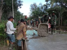 “Coba saja kalau tidak ada arco, tidak mungkin pekerjaan bisa secepat ini” ujar Sertu Sugiyanto sambil menumpahkan adukan semen dari dalam arco.