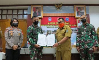 Usai kegiatan upacara pembukaan TMMD acara dilanjutkan dengan penandatanganan berita acara dan penyerahan program TMMD ke-111 TA. 2021.