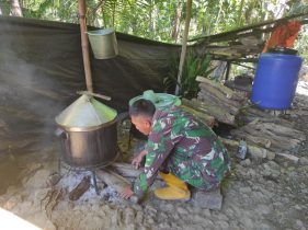 “Tantangan pasti ada tentunya yaitu Repotnya jika api mati kita harus meniup tungku api menggunaka semprong atau tidak dengan nafas sekuat2 nya dan tentunya kami menggunakan kayu bakar yang kering” tutupnya Serda Stefelix Endri.