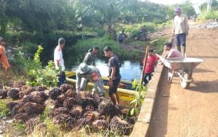 Pemilik sampan bapak Ilham sangat berterima kasih kepada TNI umumnya dan khususnya kepada Serda Budi Harsono dan rekan-rekannya atas bantuan bongkar muat sawit di sampannya.