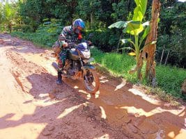 Kubu Raya – Memasuki minggu ke-3 lokasi pelaksanaan TMMD ke-111 Kodim 1207/Pontianak di Dusun Maju Jaya, Desa Kuala Mandor B, sering diguyur hujan sehingga menyebabkan jalan yang sedang dikerjakan menjadi licin dan berlumpur. Walau jalan berlumpur, namun tidak menyurutkan Serda Rahmanta untuk menuju lokasi TMMD ke-111, Jumat (02/07/2021).