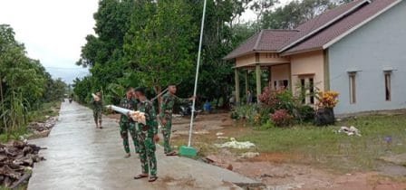 Kubu Raya – Kurang lebih 1 bulan lagi warga negara Indonesia akan memperingati hari ulang tahun kemerdekaan Republik Indonesia yang ke-76. Untuk menyambut HUT RI tersebut, anggota satgas TMMD membuat beberapa tiang dari kayu untuk dipasang bendera merah putih dan umbul-umbul. Tiang-tiang ini nantinya akan dibagikan secara gratis kepada warga yang tinggal di sekitar lokasi TMMD ke-111 Kodim 1207/Pontianak yaitu di Dusun Maju Jaya, Desa Kuala Mandor B, Kecamatan Kuala Mandor B, Kabupaten Kubu Raya, Jumat (16/07/2021).