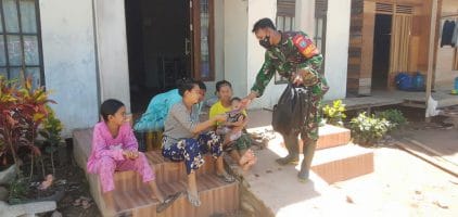 Sertu Komang yang kegiatan sehari-harinya dalam bertugas dimanapun selalu beriteraksi dengan masyarakat. Terlebih lagi kali ini, menyempatkan dirinya beriteraksi dan berkomunikasi sosial di rumah ibu Jariah yang kebetulan ibu-ibu tetangga juga sedang berkumpul.