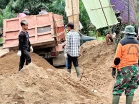 “Dalam pelaksanaan pengecoran jalan rabat beton ini sebagian para anggota satgas TMMD masih melaksanakan aktifitasnya dalam melangsir koral dan pasir untuk didekatkan ke mesin molen yang nantinya akan dijadikan adukan cor” ungkap Sertu Ronisal.