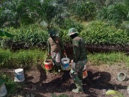Kubu Raya – Dusun Maju Jaya, Desa Kuala Mandor B, Kecamatan Kuala Mandor B, Kabupaten Kubu Raya adalah tempat atau sasaran program TMMD ke-111 yang dilaksanakan Kodim 1207/Pontianak. Untuk memenuhi kebutuhan air dalam pengecoran jalan rabat beton, TNI dan warga mengambil air dari parit sumber air terdekat. Air yang diambil dipakai sebagai salah satu bahan utama pengadukan material dan semen, Sabtu (03/07/2021).