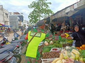 “Pemberlakuan PPKM mikro masih terus berjalan ini menjadi tugas Babinsa untuk terus-menerus melaksanakan sosialisasi dan tindakan nyata di lapangan seperti membagikan masker secara cuma-cuma, kegiatan edukasi, sosialisasi dan himbauan serta bagi-bagi masker kepada masyarakat ini adalah upaya Babinsa dan satgas PPKM mikro Kelurahan untuk membiasakan masyarakat dengan perubahan sosial akibat pandemi covid-19 dan upaya melindungi diri serta masyarakat dapat memahami dan mengerti bahaya penularan dari virus covid-19” tutup Serda Agus.
