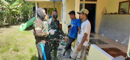 Kubu Raya – Sertu Asiani yang merupakan bagian dari satgas TMMD ke-111 Kodim 1207/Pontianak selalu aktif ingatkan warga pentingnya memakai masker, Sabtu (10/07/2021).