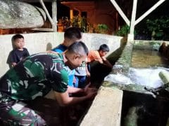 Anggota Satgas TMMD ke 111 Kodim 0212/TS, hari terakhir mengajarkan kepada anak anak bagaimana cara berwudhu dengan baik, di Desa Siuhom Kec, Angkola Barat Kab. Tapanuli Selatan.