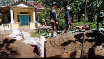 Kubu Raya – Pembangunan jalan rabat beton di lokasi TMMD ke-111 Kodim 1207/Pontianak sudah sampai di depan rumah pak Haji Saruki, Minggu (11/07/2021).