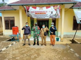 Bengkayang – pasiter yang merupakan koordinator lapangan dalam pengerjaan Satgas TMMD Regtas Ke 111 Kodim 1202/skw , kapten INF Sarmin melaksanakan Komsos bersama dan foto bersama Perangkat Desa setangau jaya kec seluas kab bengkayang.